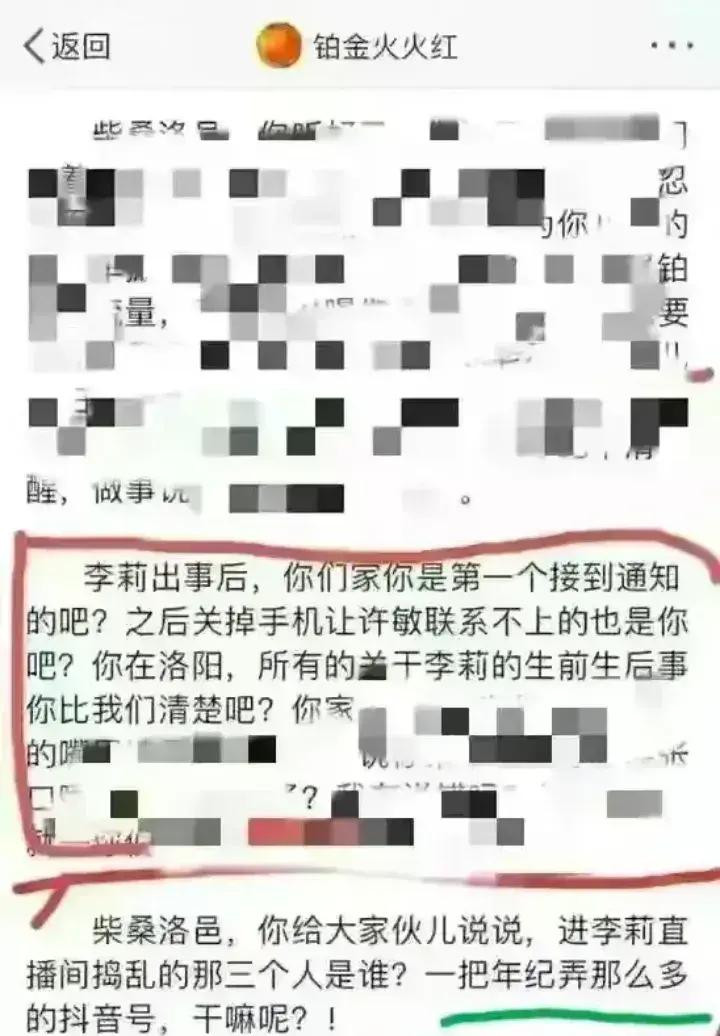 曾经有“许粉”网民“铂金……”质问许敏的姐“柴桑洛邑”——“进李莉直播间捣乱的那三个人是谁?”可至今也没见“柴桑”回答这个真相?